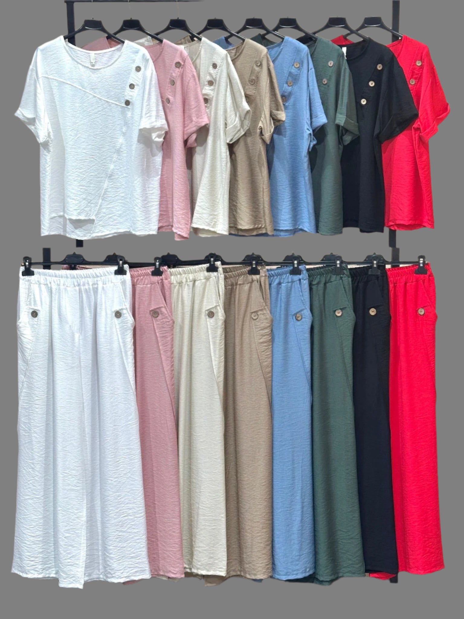 Otkrijte savršenu kombinaciju udobnosti i sofisticiranosti. Ovaj dvodijelni set od lagane viskoze kombinira opušteni kroj sa stilskim izgledom - za one ljetne trenutke kada želite izgledati bezbrižno šik.