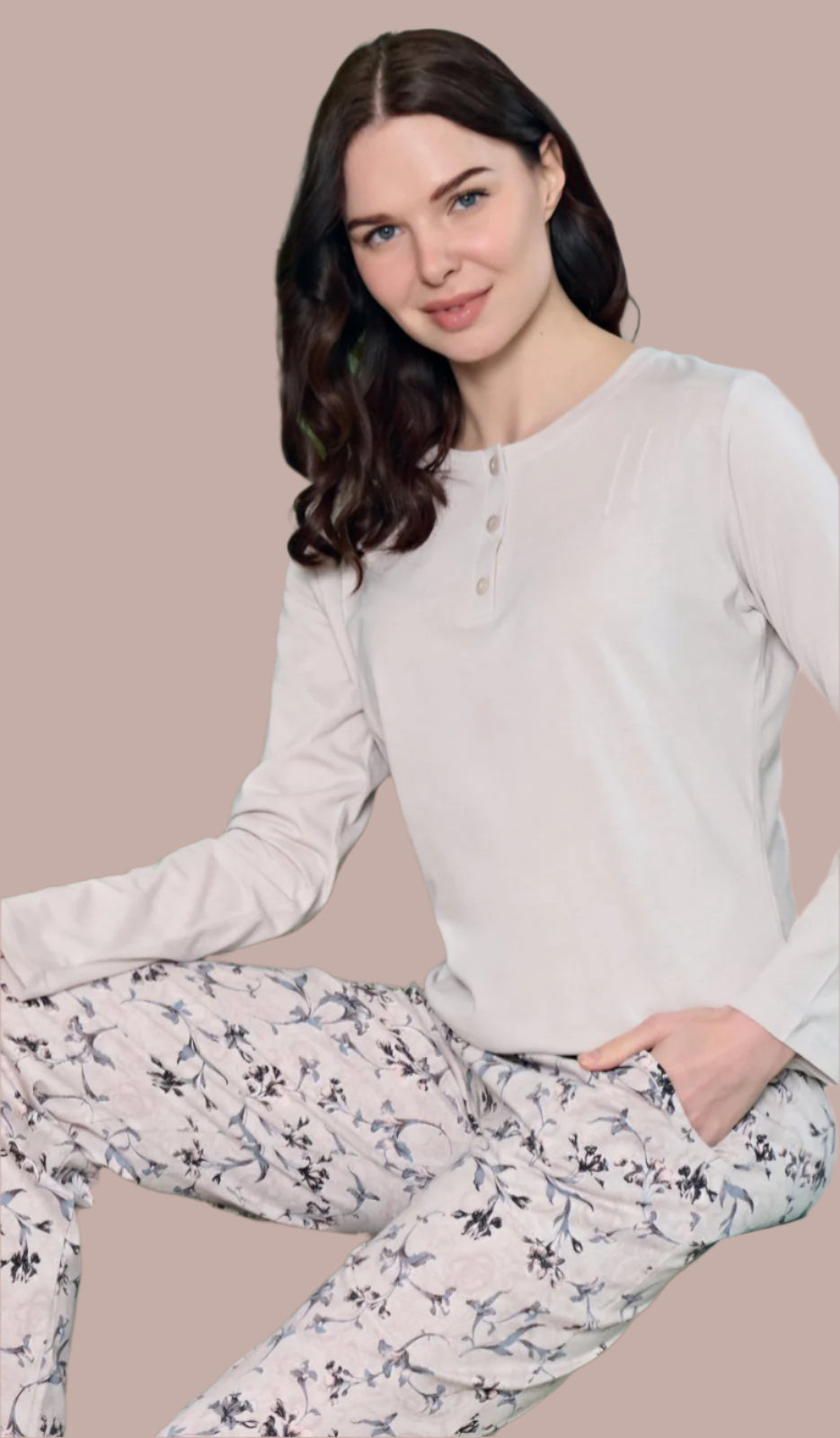 Uživaj v popolnem udobju z lahkotno poletno pižamo iz 100 % česanega bombaža. Mehka, zračna in nežna do kože – popolna izbira za tople noči. Klasičen kroj omogoča udobno prileganje, naravni materiali pa poskrbijo za svež občutek skozi vso noč.