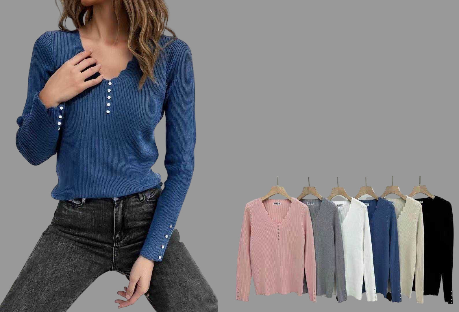 Tanjša majica z dolgimi rokavi in zobčastim izrezom. V 6 barvah in dveh velikostih.