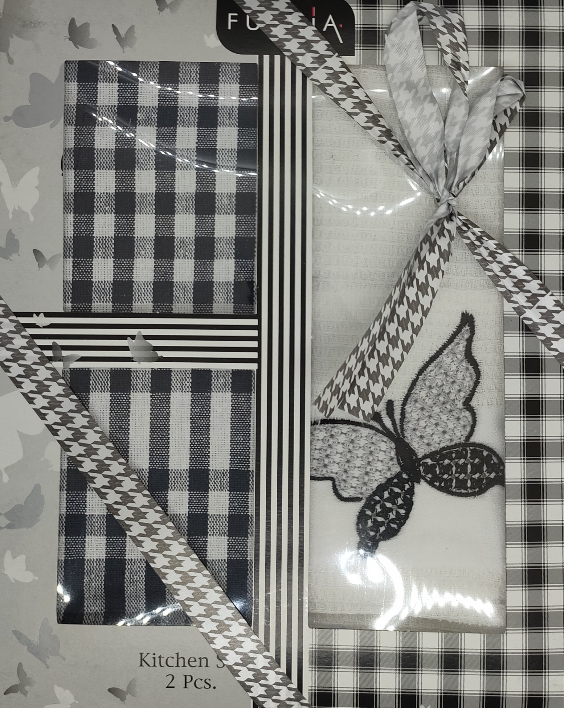 Visokokakovostna kuhinjska serveta, pakirana v elegantni darilni škatli.
